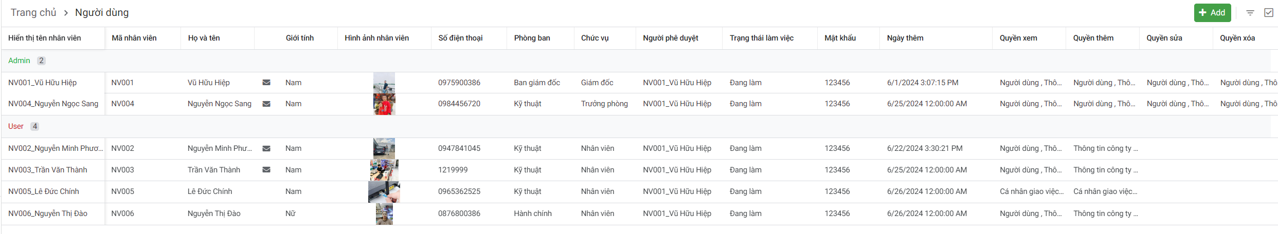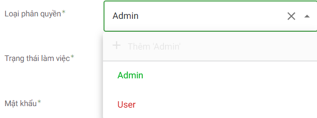 Loại phân quyền hiện tại đang có 2 loại được tạo sẵn là Admin và User. Trong trường hợp nhu cầu quản lý phát sinh thì bạn có thể tạo thêm.