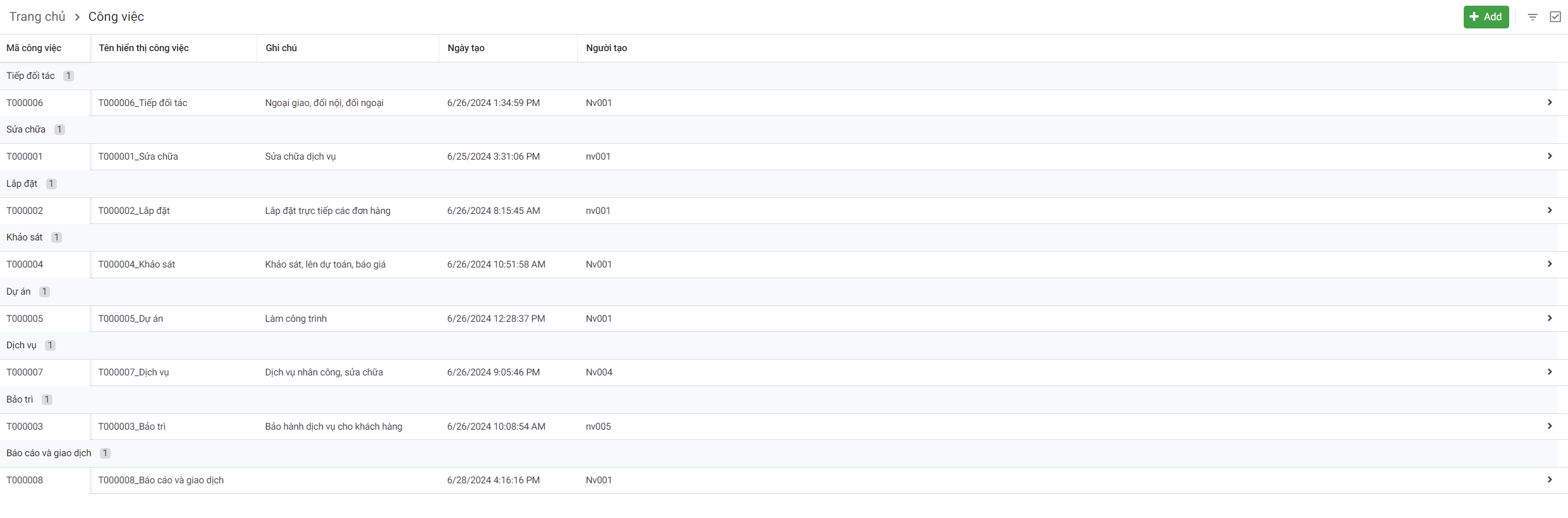 2.3. Khai báo danh mục nhóm công việc