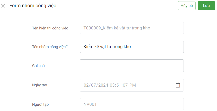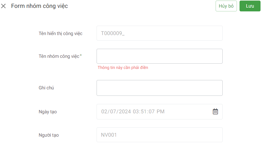 Ở đây bạn chỉ cần điền tên nhóm công việc rồi ấn