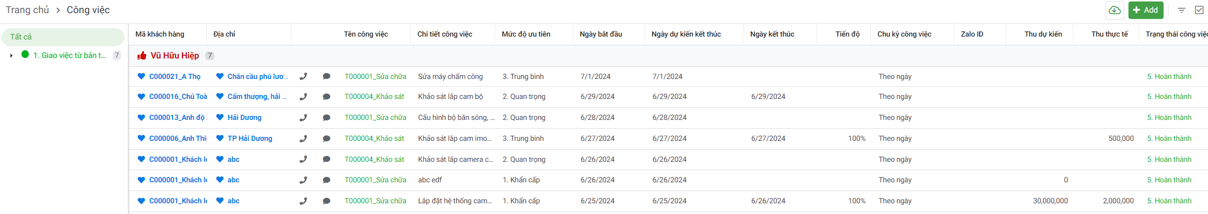 Bạn có thể kiểm tra nhanh danh sách các công việc đã hoàn thành, đã huỷ, đang tiến hành hoặc nhận việc từ Admin ở đây.