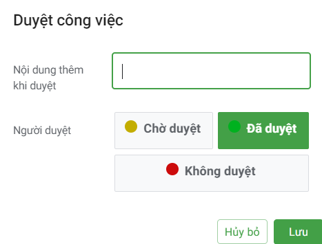 Ngoài ra với tài khoản Admin thì bạn có thể duyệt công việc hoặc không duyệt công việc đã được các User gửi lên.