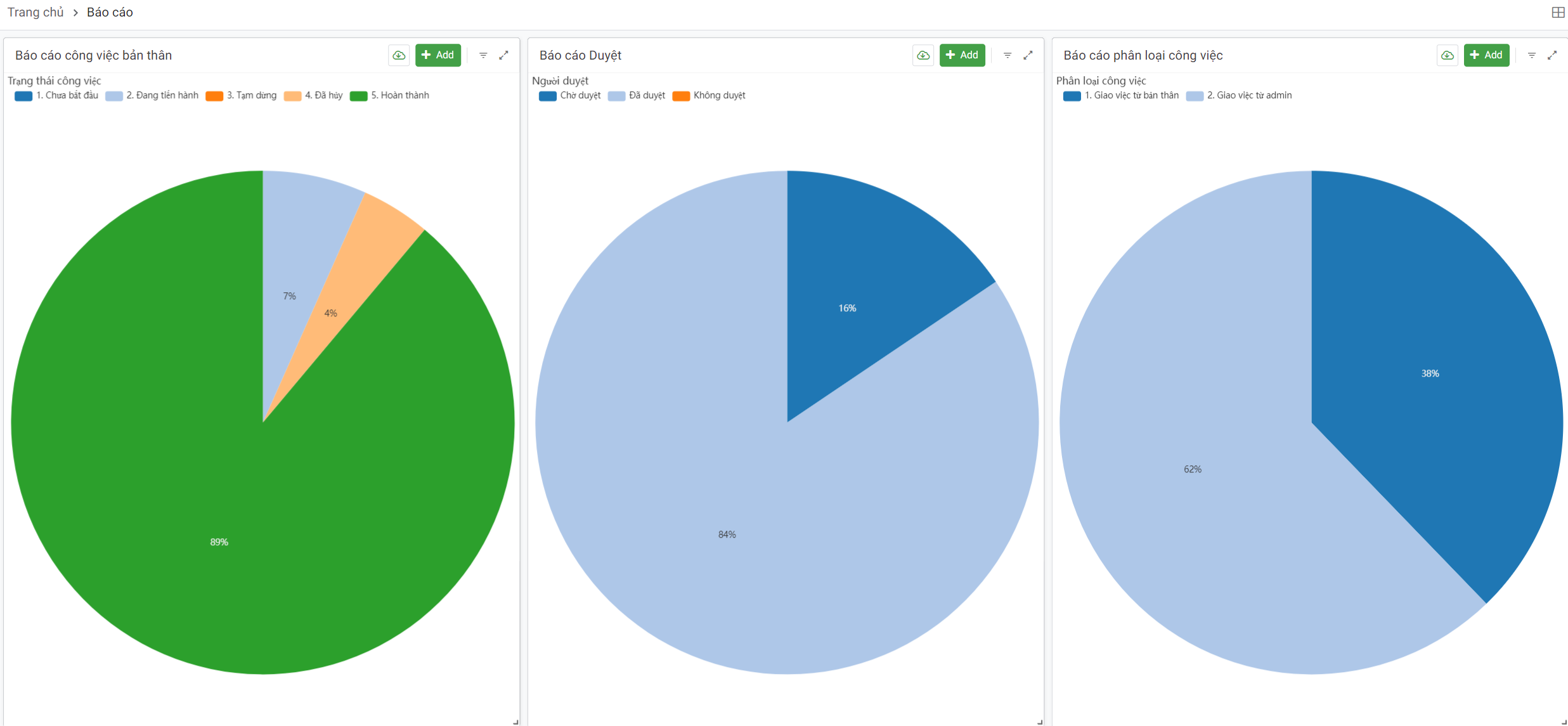 Tại đây bạn có thể xem được tỷ lệ hoàn thành công việc của chính bạn là bao nhiêu %.