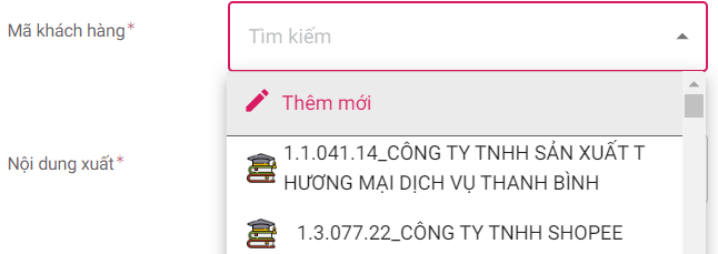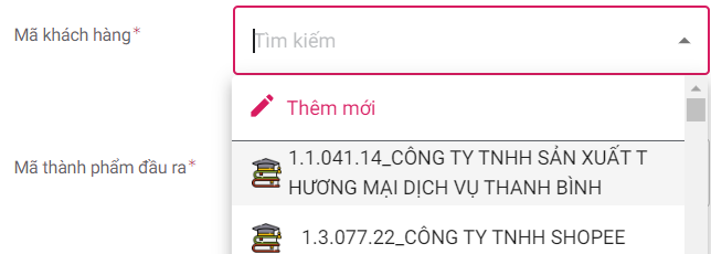 Với mã khách hàng thì bạn có thể chọn trong danh sách mã khách hàng mà bạn đã tạo hoặc nếu chưa có thì bạn có thể ấn vào Thêm mới để tạo thêm.