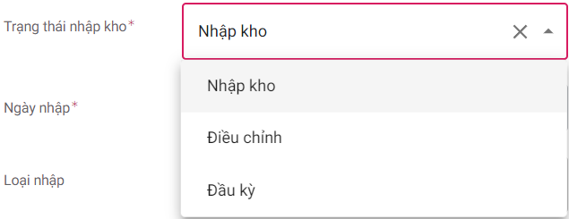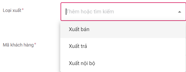 Với loại xuất bạn có thể chọn trong các giá trị có sẵn hoặc nếu chưa có thì bạn có thể gõ thêm giá trị mới vào và ấn thêm là được.