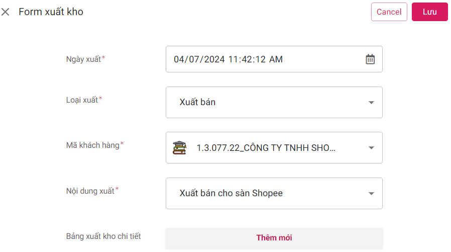 Đến đây bạn cần nhập đủ các thông tin liên quan đến xuất kho chi tiết.