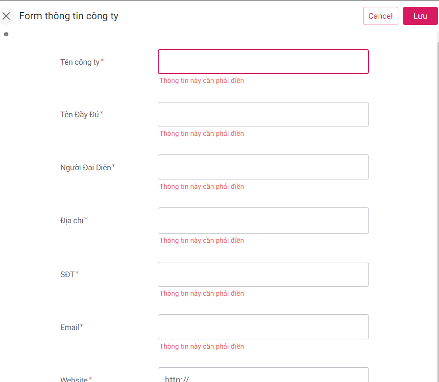 Trong đây bạn sẽ cần khai báo tất cả các mục có dấu * bên cạnh.