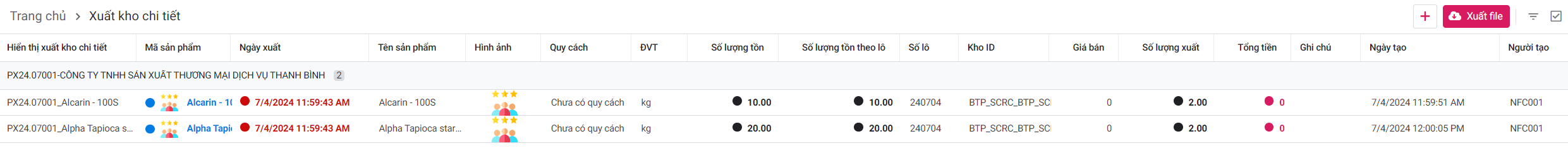 Bạn chờ 1 chút và bạn có thể chọn phiếu xuất kho chi tiết và xuất kho tổng ở 2 biểu tượng dưới đây.
