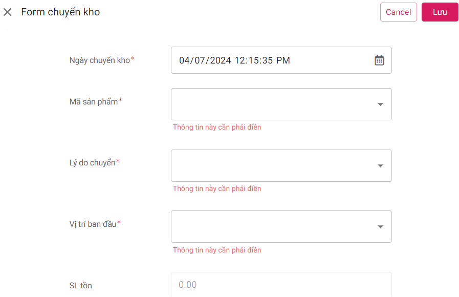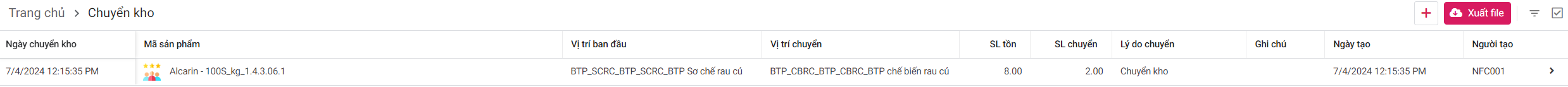 Để tạo nghiệp vụ chuyển kho thì bạn cần click vào biểu tượng
