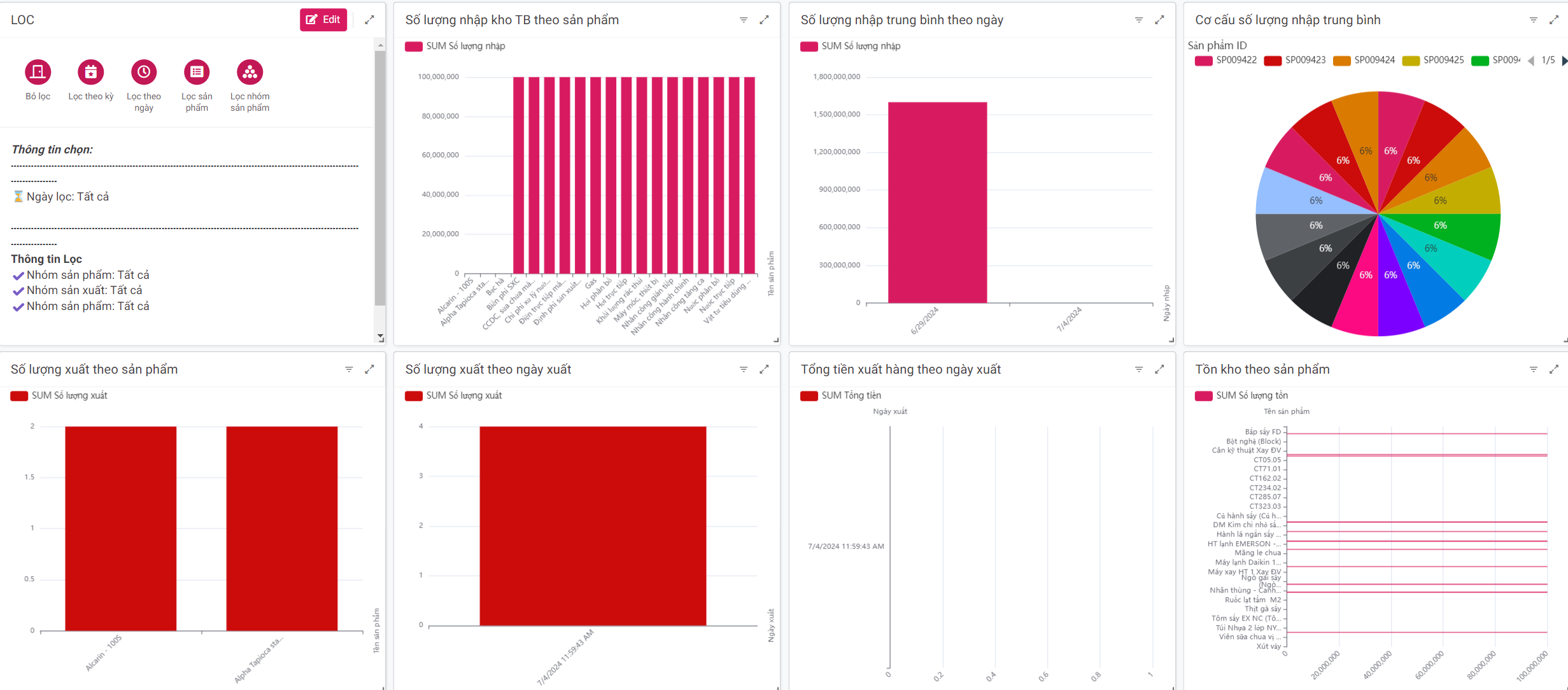 Tại đây bạn có thể kiểm tra tình hình tồn kho theo sản phẩm.