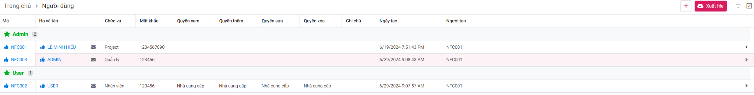 Trong trường hợp bạn muốn kết xuất thông tin người dùng thì ta có thể click vào biểu tượng