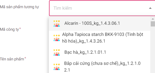 Trong trường hợp mã sản phẩm bạn muốn tạo đã có mã sản phẩm tương tự trước đó. Bạn có thể sử dụng chức năng này và chọn các Mã sản phẩm tương ứng để sao chép thông tin từ các sản phẩm đã có. Nếu không cần sử dụng tính năng này thì bạn chỉ cần bỏ qua trường này là được.