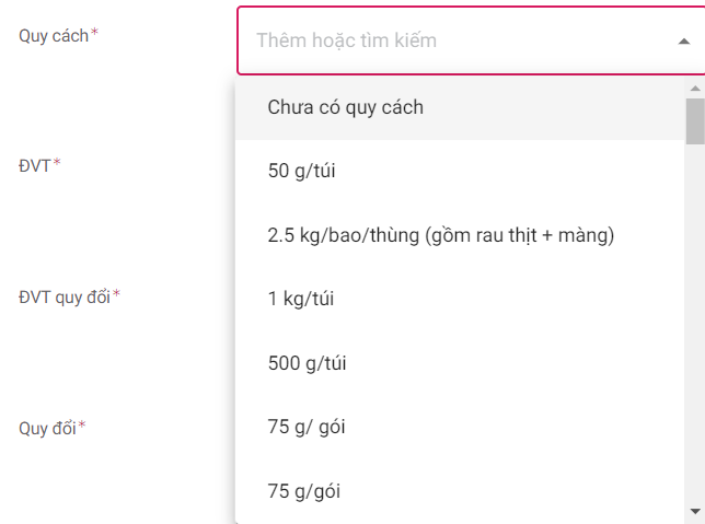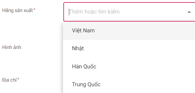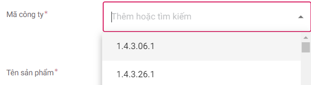 Tại đây các trường thông tin khi bạn click vào có chữ là Thêm hoặc tìm kiếm thì bạn có thể chọn trong danh sách đã có hoặc nếu chưa có thì bạn chỉ cần gõ thêm mã mới và ấn Thêm là được.