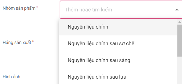 Nhóm sản phẩm đã có rất nhiều nhóm sản phẩm đã được tạo sẵn. Trong trường hợp bạn muốn gõ thêm nhóm sản phẩm nào đó thì bạn chỉ cần gõ vào và ấn vào thêm là được. Ví dụ như dưới đây.
