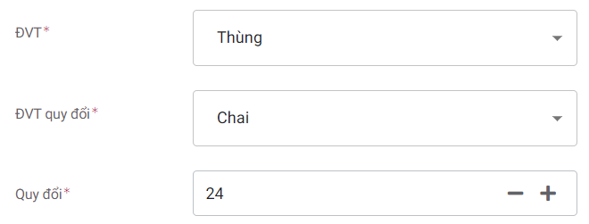 Nhập như trên thì App sẽ hiểu là 1 Thùng được quy đổi thành 24 Chai.