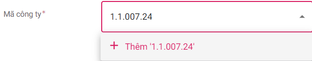 Phần mã công ty do công ty tự quy định nên các bạn có thể chọn từ các mã công ty đã có sẵn hoặc bạn có thể gõ mã mới và ấn thêm là được.