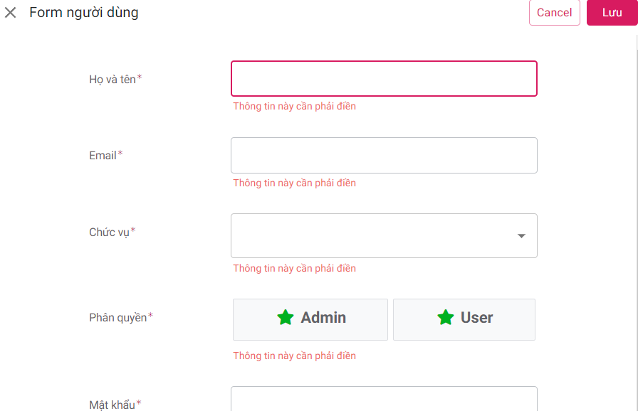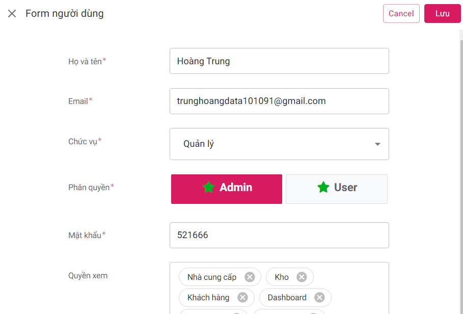 Để thêm mới người dùng mới thì bạn chỉ cần click vào biểu tượng