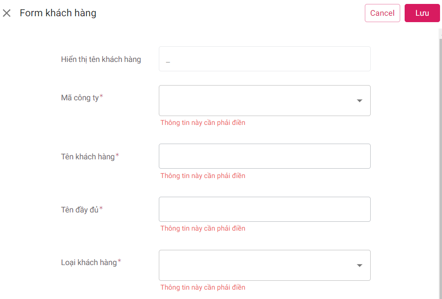 Các bạn chú ý là chúng ta cần nhập đủ các trường có dấu * thì mới có thể lưu thông tin khách hàng lại được.