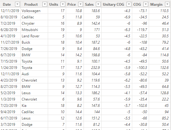 , "Margin", SUMX(currentClassTable, CALCULATE(SUM('Sales table'[Margin])))/SUM('Sales table'[Margin]))
