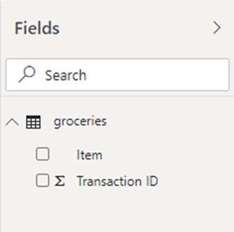 var transactionsWithItem1 = SELECTCOLUMNS(FILTER('groceries','groceries'[Item]=item1),"transactionID",[Transaction ID])