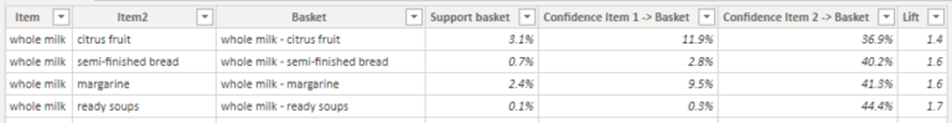 var supportItem2 = COUNTROWS(FILTER('groceries','groceries'[Item]=item2))/numberOfTransactions
