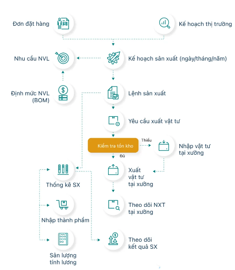 🔗 Lập kế hoạch sản xuất căn cứ vào nhu cầu, cho phép điều chỉnh (bổ sung/giảm) kế hoạch sản xuất sau khi lập khi phát sinh biến động.