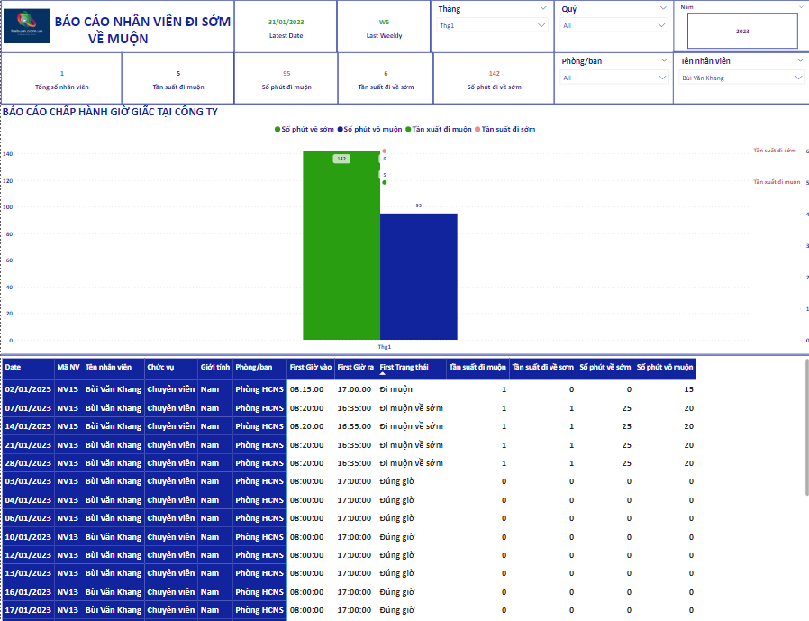 ✔️ Thống kê theo: Số lần đi muộn hoặc Số lần về sớm.