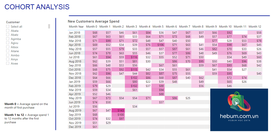Phân tích Cohort trong Power BI – chi tiêu trung bình của khách hàng mới